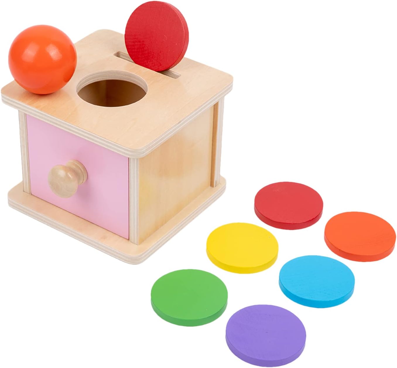 Adena Montessori Coin Box,Object Permanence Box for 1 Year Old Baby Coins,Wooden Ball Drop Developmental Toys for 6-12 Month Infant Toddler,Learning Kids Gifts(Yellow-Green Door)