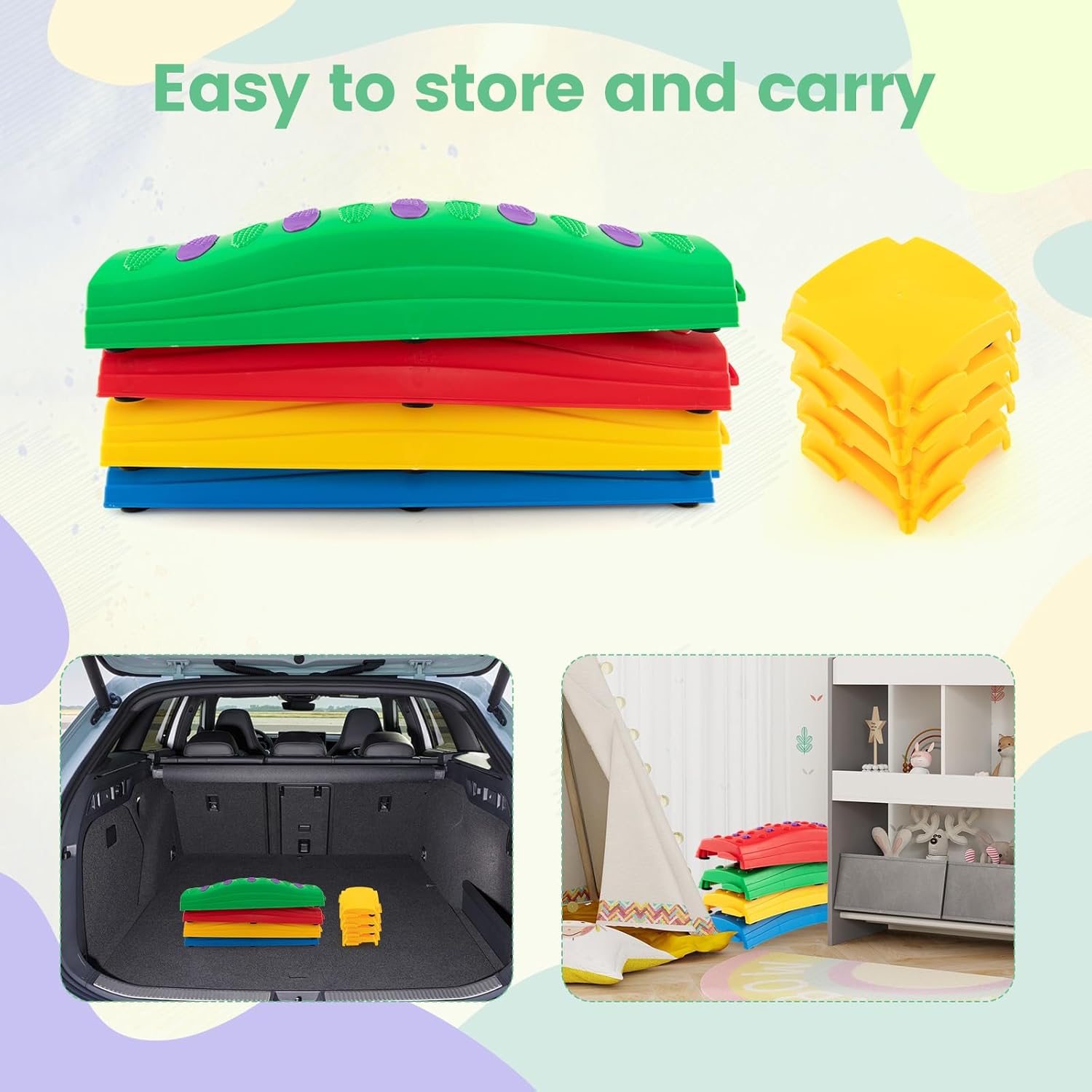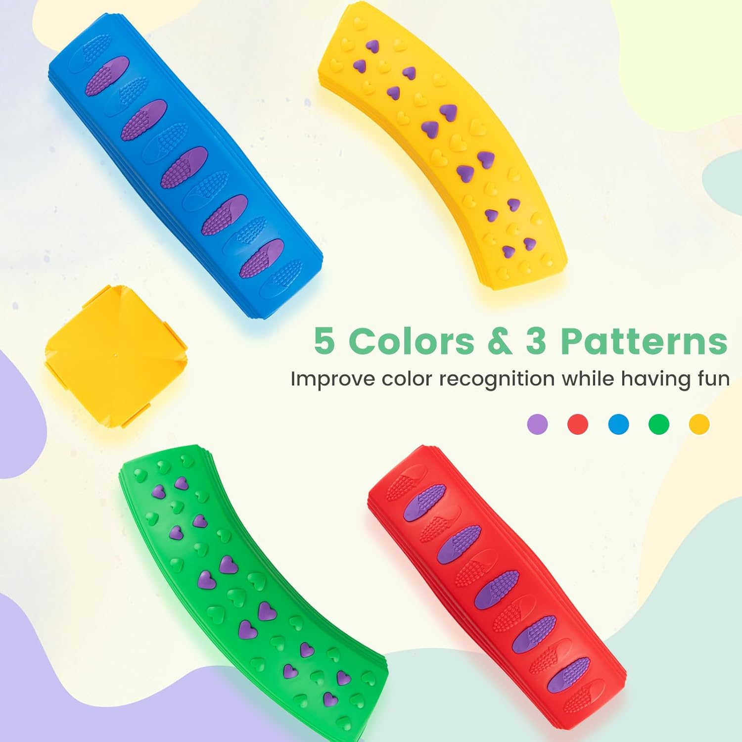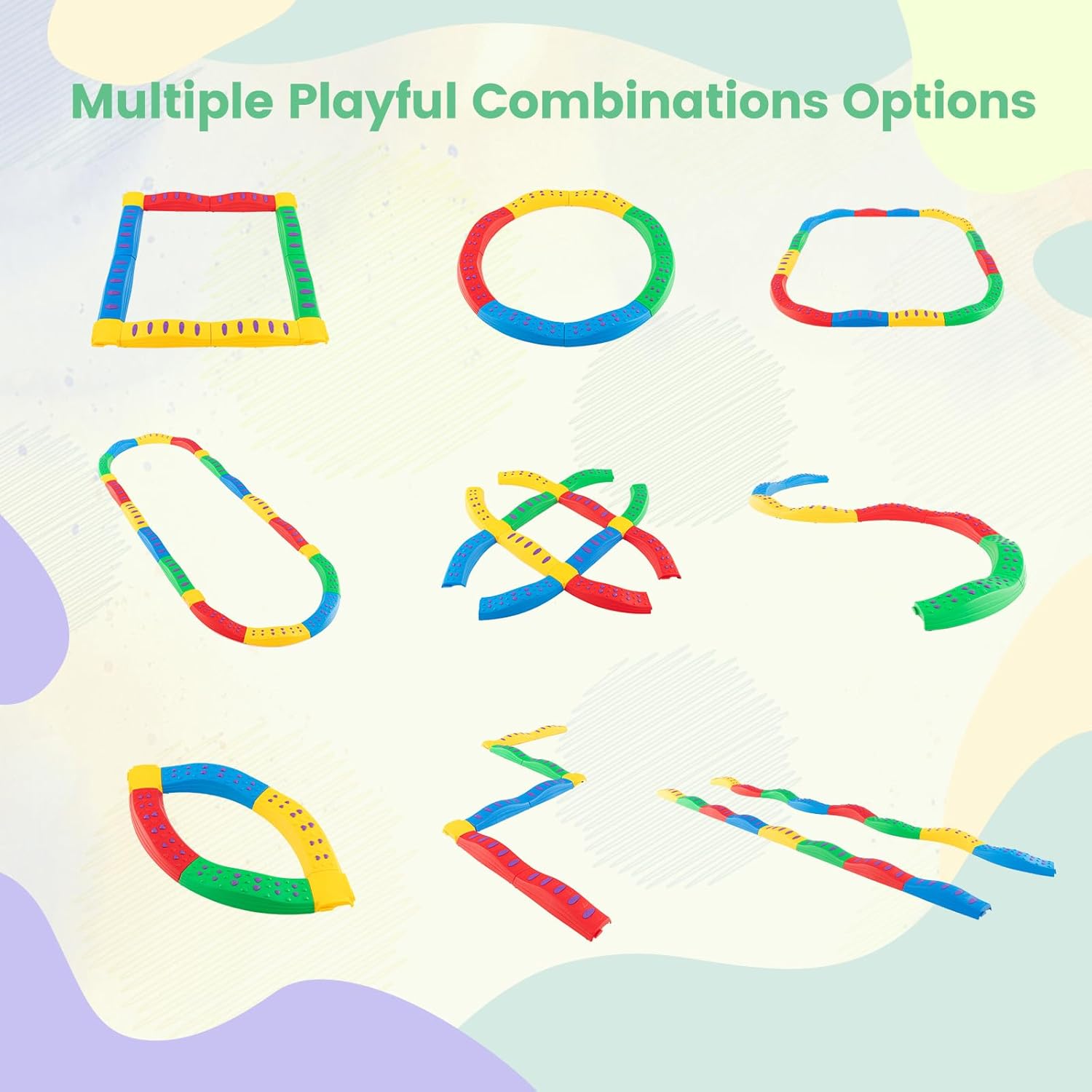 INFANS Kids Balance Beam Stepping Stones Set, 20 PCS Montessori Obstacle Course for Toddler Indoor Outdoor, Non Slip Rubber Base, Gymnastics Toy, Build Coordination Gross Motor Skills (Rainbow)