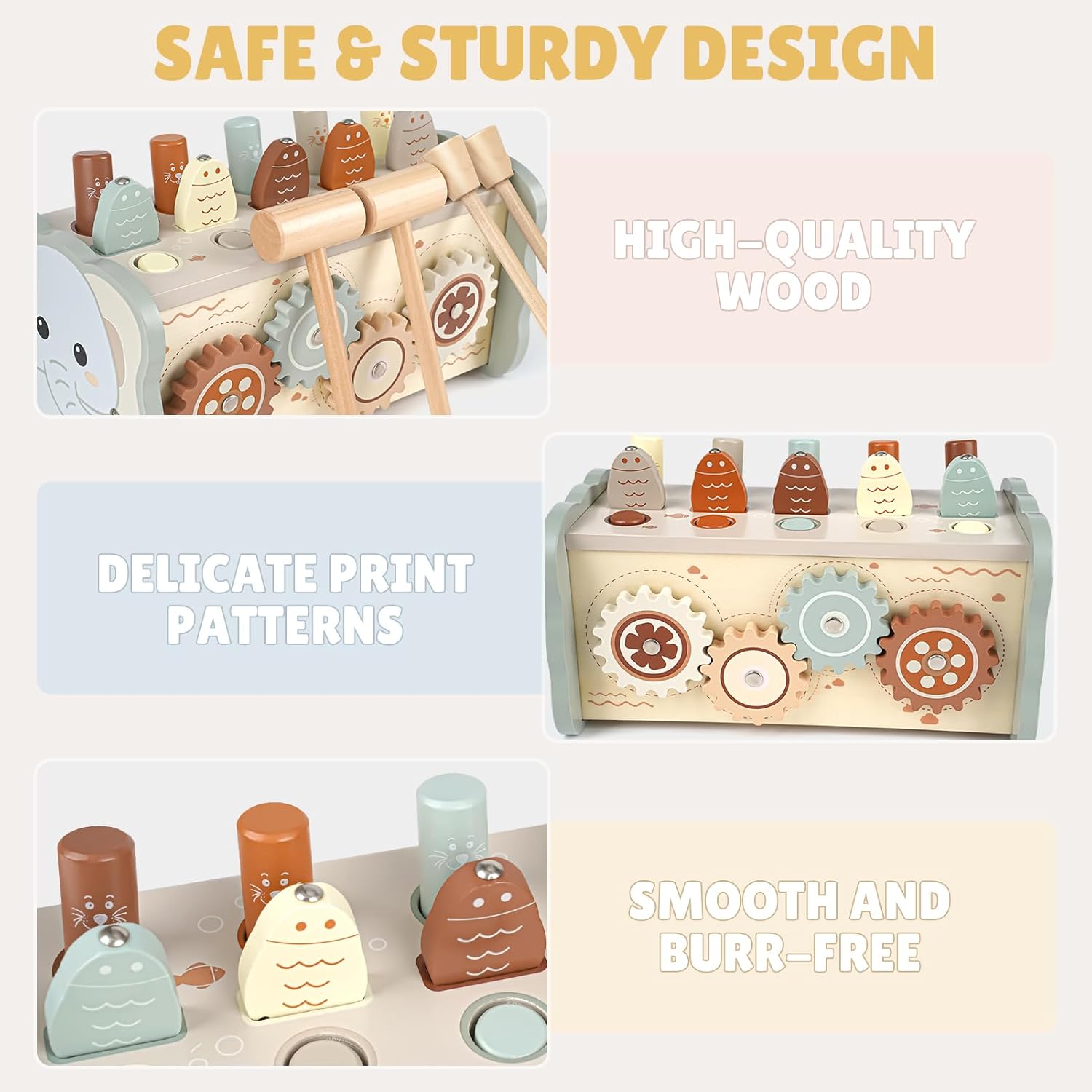 Joyreal Wooden Montessori Toys for 1 Year Old – Hammering Pounding Toy with Xylophone & Fishing Game – Educational Toddler Activities for 1 2 3 Year Old Christmas Birthday Gifts
