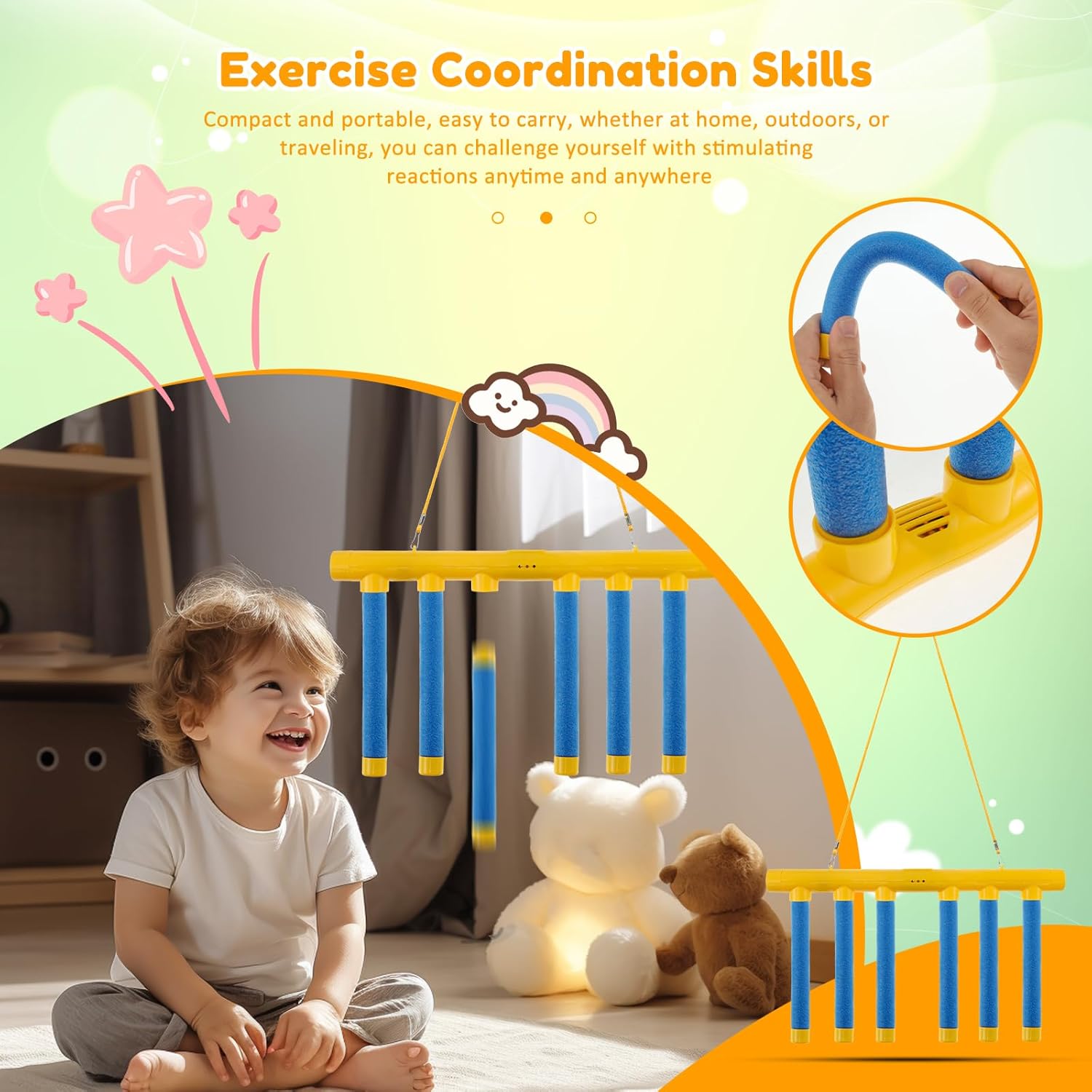 Muyoka Catching Sticks Game, Hand Challenge Game, Drop Sticks Game, Hand-Eye Coordination Training, Reaction Training Toy, 3 Adjustable Speed, Falling Sticks Catching Game for Adults Kids (Blue)