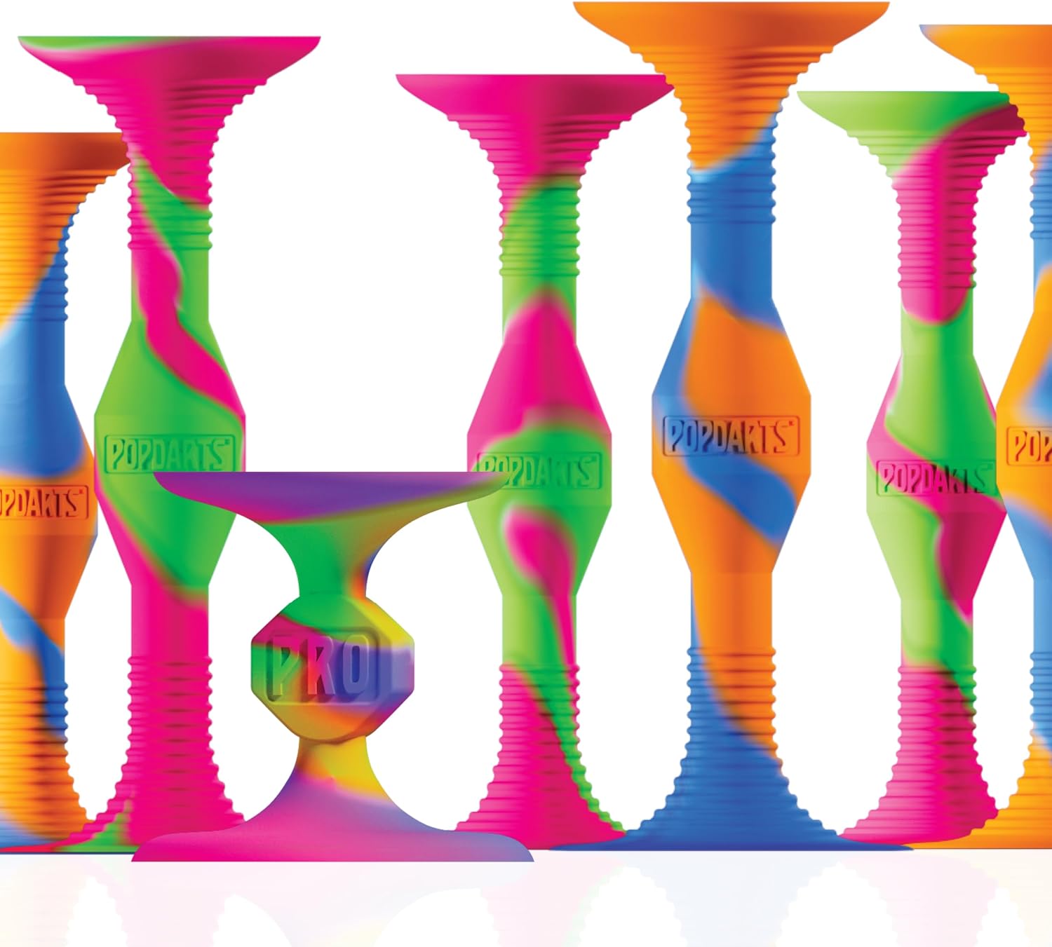The Popdarts® Pink and Gray PRO Pack is finally in stock and available for purchase! It is the sameversatile, fun & competitive game you all know and love but with an added twist! Grab the PRO Pack and take your Popdarts game to the next level by going for the insane Wigglenobber ™ Target Marker shot that’s worth 10 points!Some say it’s “the best possible addition to Popdarts” and we can’t wait for you to try it out! This is the next legendary dart game like you’ve never seen before. Forget everything you know about traditional darts. Our compact sets can be played wherever you go, indoors or outdoors. WHY CHOOSE POPDARTS®? In a world that isolates us with devices, we bring you a game that brings friends and family of all ages together, fuels creativity, and challenges abilities! HOW DO YOU SCORE?Landing on the Wigglenobber ™Target Marker = 10 points! The closest Popdart to the Wigglenobber ™Target Marker = 3 points. Every other Popdart that sticks = 1 point. Use “Cancellation Scoring” (just like cornhole). For example: 5 pink/white – 2 gray/white= 3 pink/white. Each game consists of multiple rounds! The first team to reach 21 points wins! Yes, you are allowed to go over 21 points. Popdarts® stick best to smooth surfaces like a countertop, refrigerator, window, car windshield, glass door, surfboard, etc. You want to avoid bumpy, textured, or porous surfaces like wood. They are suction cups so they need to be used on surfaces that you’d expect a suction cup to function on. WHERE CAN I PLAY? HOW LONG DO THEY LAST?Our Popdarts ®do not “wear out”. They are super durable and if they get dirty just simply rinse them off and keep on poppin’! They are dishwasher safe as well. 🙂 Where to find Score Keeper? Popdartsgame.com/pages/scorekeeper Navigate from our website each time or save this page to your home screen for quick access. What’s Included? 3 Pink/White Swirled POPDARTS ® 3 Gray/White POPDARTS ® 1 Pink/Gray/White Wigglenobber ™Target Marker 1 Mesh PRO Pack Carrying Bag with a ruler printed on it 1 POPDARTS ®PRO vinyl sticker 1 POPDARTS ® icon sticker How to Play with 6 Individual Players? (3 Sets Needed) Players rotate throwing one at a time toward the Orange Target Marker until all Popdarts have been thrown. ONLY THE TOP TWO PLAYERS’ POINTS ARE USED IN EACH ROUND. Use cancellation scoring to count up the score. Check out this example: Green (5 pts), Purple (3 pts), Yellow (2 pts), Blue (2 pts), Blue/Green swirl (2 pts), Purple/Yellow swirl (2 pts). Green would win the round with 2 points (5 Green – 3 Purple = 2 Green). The points from the other players are not counted toward the score in the round. Then Green would take possession of the Target Marker and call the shot for the next round. Play multiple rounds until a team reaches 21 points or higher. How to Play with 6 Players on Teams? To play with 6 players on TEAMS, you will need three sets of Popdarts. For example, each player on Team A (Blue, Green, and Blue/Green swirl) would get 3 Popdarts for a total of 9 and each player on Team B (Purple, Yellow, and Purple/Yellow swirl) would get 3 Popdarts for a total of 9. Players rotate throwing one at a time toward the Orange Target Marker until all 18 Popdarts have been thrown. Use cancellation scoring to count up the score. For example, if Team A scored 12 points and Team B scored 8, then Team A would win the round with 4 points [12 (Team A) – 8 (Team B) = 4 (Team A)]. Then Team A would take possession of the Target Marker and call the shot for the next round. Play multiple rounds until a team reaches 21 points or higher. Shipping All orders are shipped within 1-2 business days. Standard shipping within the USA is approximately 3-7 business days. Thanks for supporting Popdarts ®and we hope you join the PD Nation!