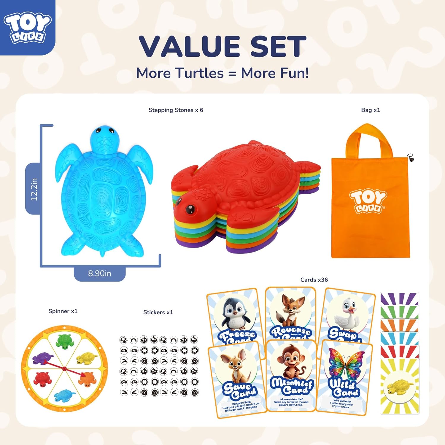 TOY Life 6 Pcs Turtle Balance Stepping Stone for Kids, Indoor Outside Toys for Kids Ages 4-8, Toddler Outdoor Toys, Stepping Stones Game, with Cards and Spinner